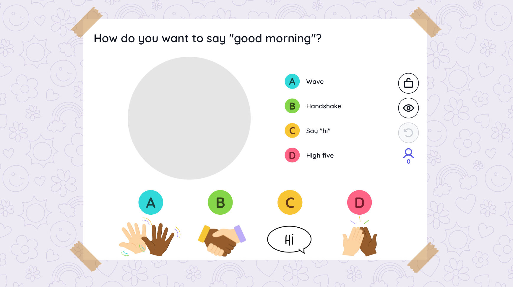 Using the Poll widget, students can choose their greeting as they arrive, helping teachers build routines that encourage autonomy, inclusion, and positive relationships.